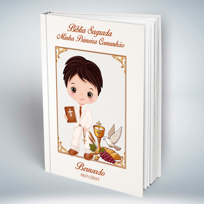 Aconselhamos que o Nome que estará na capa seja apenas o primeiro nome, ou primeiro e segundo nome apenas, para que a composição dos elementos esteja com as devidas proporções aproximadas das imagens dos produtos. Lembrando que o campo "Nome Personalizado" permite a inserção de até 30 caracteres.